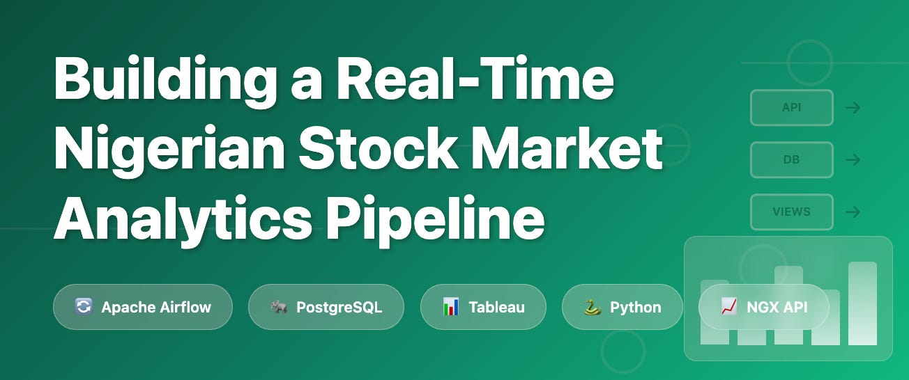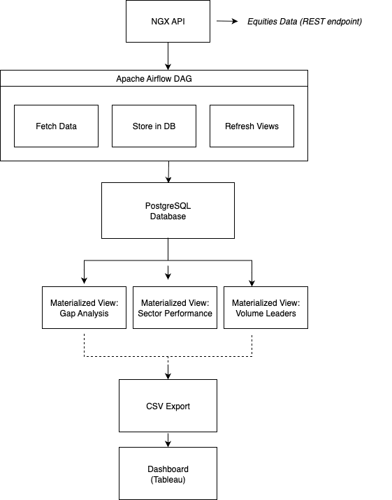 In this post, I’ll walk you through how I built an end-to-end analytics platform for NGX equities data using Apache Airflow, PostgreSQL, and Tableau, one of the most used modern BI tools. Whether you’re a data engineer looking to build similar pipelines or an investor seeking to better understand market analytics, this project showcases practical patterns for real-time financial data processing.